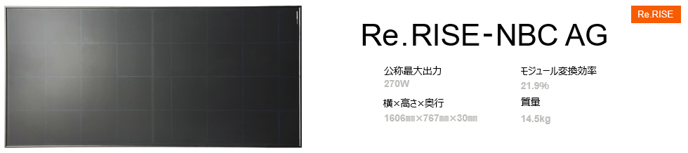 Re.RISE-NBC AG270 太陽電池モジュール 住宅用 低圧・産業用 各種資料をダウンロードできます。 データシート 2026-02-19 データシート_Re.RISE-NBC AG270 更新履歴